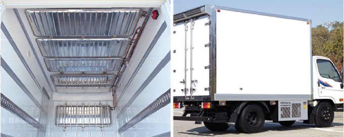 When operating the refrigerator with AC power (220-380V), the PCM (Phase Change Material) panel inside the cold top is slowly cooled down to -45°C, thus being charged with chill. While the vehicle is running, the stored chill is slowly emitted, thus stably keeping the interior temperature at -30~-20°C. It is strongly recommendable for users wishing to transport frozen food, ice cream, seafood, etc. in hot climates.