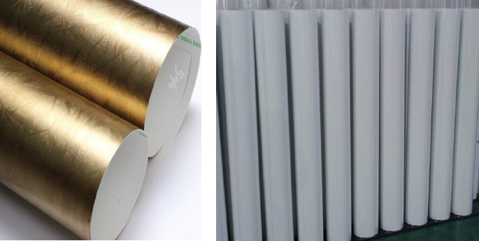 Under the brand name of MEDIA INTEC, various kinds of competitive products such as Solvent Inkjet Media, Cold Laminating Film, Cutting Sheet, Marking Sheet, PVC Solvent Wall Paper, Window Film, etc. are now being marketed. And Han Yang has also added its brand name called SAEK DAREN for the manufacturing of the IPP series, ELVIRA series,WOOD series, ETERNEL series, ART LEATER series, etc. Han Yang’s interior films is now highly selected as construction interior materials for decorating the interiors of restaurants, offices, hospitals, schools, etc. or changing the wall decoration. When made with special treatment, it is easy to stick such films to the wall or a subject after removing the release paper. The white gloss of interior film is 1.23m in width and 50m in length, respectively.