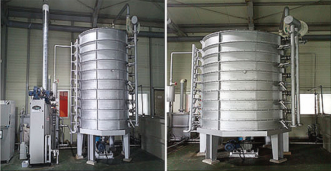 Especially, Wonjin’s multi-step sludge drying unit is extensively customizable. Each layer has a heat plate where sludge can stay longer than usual and becomes dehydrated. Since this machine can process the liquid-based sludge up to 99%, it is applicable to a high-density waste treatment facility. All in all, this sludge drier, thanks to its high efficiency, is rather a simple structure and takes little space to install, which eventually lowers its maintenance cost.