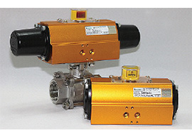 [INQ. NO. 1407M08] Auto Valve’s pneumatic actuators are succeeding in gaining a favorable reputation in industry circles by applying an on-off indicator distinguishable by human eyes in a pneumatic drive into a valve. They are products assembled with various colors of molds, differentiated from already familiar colors of other companies’ products.