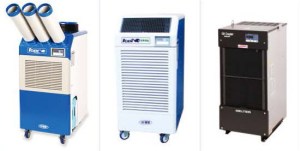 Movable air-conditioner is capable of powerful air-conditioning in workplaces where total air-conditioning is not possible and in places where high heat occurs. The water-cooled air-conditioner, not an air-cooled one, is produced for a kitchen in a restaurant.
