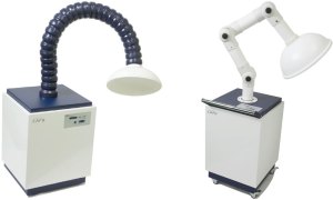 We are manufacturing and offering seven types of products: arm hood, flexible hose, local ventilation system for desk, movable local ventilation system, small-sized dust collector, and movable dust collector.
