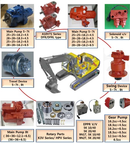 Major products of SF Hy World can be divided into three major categories. The first hydraulic devices for excavators currently under development and production are main pumps used for 5- to 8-ton excavators, and the swing devices used for 5 to 8-ton excavators. Unlike most existing products of many other Korea companies, SF Hy World undertakes performance tuning on products via consultation to suit the customer’s excavators, so that the equipment can be operated in optimum condition.
