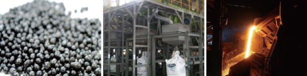 The SC BALL (Steel Compound Ball) reproduced from the steel making slag, which is a by-product of steel making, by using SQT (Slag Quenching Technology) is a material that has a stable molecular structure and does not include heavy metal. It is sold as the raw material for iron making, subsidiary raw material for steel making, and material for abrasives, filtration media for water treatment, water permeable block, weight material, etc. in the steel mill (sintering). It is also an eco-friendly new material which reduced 0.5 million tons of carbon dioxide emissions by recycling 0.13 million tons of steel slag as of 2017.