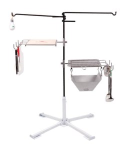 Treffer, a BBQ grill for camping, is easy to carry and assemble. It can be installed over a campfire on which to place or hang cooking utensils. It features a new type of rack shelf that enables one to adjust the height freely according to the position desired by the user, and it also can be used as a simple burner. Designed to offer excellent space utilization, durability, and mobility, it is a unique product not only domestically but in the global market.