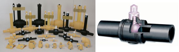 Polytec’s PE ball valves [ASTM size: ½” CTS through 16” IPS/ ISO size: 20mm through 400mm] serve for such various applications as natural gas distribution systems, coal bed methane, industrial plants, water distribution systems, and wastewater & sewage systems.