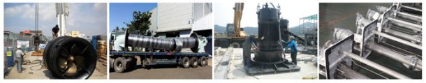 Submersible mixed flow pump ‘GSM’ and Submersible axial flow pump ‘GSA’ are made with a maximum diameter of 2500mm and a maximum flow rate of up to 1000m3 (cubic meters) per minute.