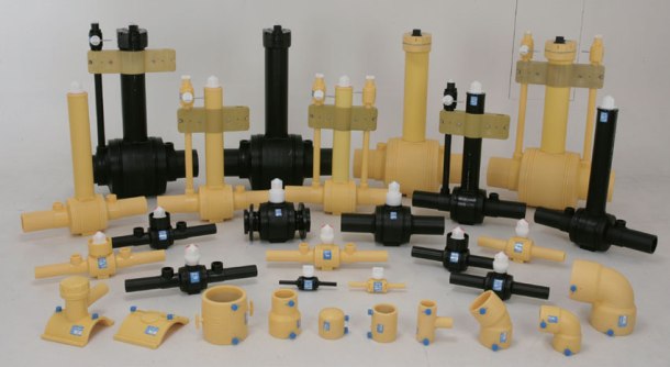 Polytec’s PE ball valves [ASTM size: ½” CTS through 16” IPS/ ISO size: 20mm through 400mm] serve for such various applications as natural gas distribution systems, coal bed methane, industrial plants, water distribution systems, and wastewater & sewage systems.