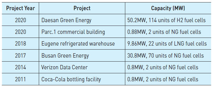 Furthermore, it works as a power source that contributes to effective system stabilization and complements intermittent energy sources like solar and wind power.Doosan Fuel Cell has been delivering 440kW stationary fuel cells at home and abroad. As of 2020, 504MW of PureCell® Model 400 units (1,293 units) are in operation or under construction.