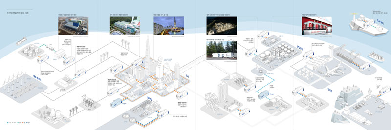PureCell® Model 400 is applicable to a wide range of structures, from commercial buildings to large-scale power plants. It is suitable for byproduct hydrogen and green hydrogen sites, distributed CHP, LNG terminal BOG, shopping malls, smart farms, and data centers. In addition, it serves the purpose of airport/port power generation and cooling and island energy generation using LPG.