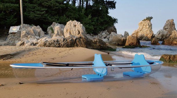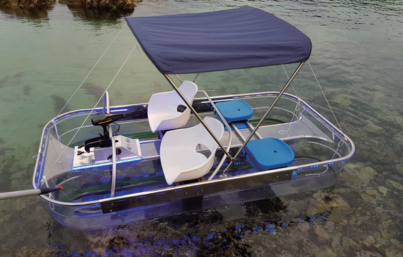 Transparent canoes, from the company, are made of special polycarbonate materials that are durable and manufactured by vacuum molding. The product is clear and transparent, and the buoyancy of EVA parts is improved for the player, the aft, and the chair, to ensure safety. It does not flood even if it is overturned during operation, as this transparent canoe features improved safety based on the best technology and productivity.