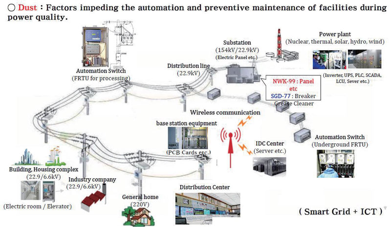 In particular, the company has recently launched its highly competitive dust cleaner, called NWK-99, for elect r ic and electronic panels under high voltage (55KV) alive. NWK-99 is an essential cleaner for maintenance of electric distribution panels and control boxes.