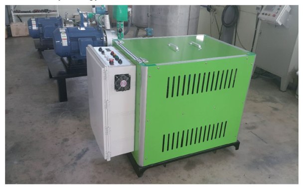 The basic principle of the product is to change the kinetic energy into the thermal energy of high-temperature by pulverizing the thermal medium oil at ultrahigh speed with the power mill. This product can supply hot water of up to 99 degrees through the heat exchanger with the heat generated at this time (Patent No. 1863099).