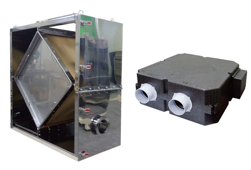 All models are made in Korea. The plate heat exchanger consists of an exchanger housing and recovery cube that is made of aluminum foil fins for heat transfer, corner sections, a bottom and a cover made of galvanized painted or stainless steel.