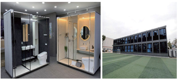Atex products are applied to a variety of architectural areas, including design innovations in industrial complexes called gray belts, interior and exterior walls of modular houses, stone from bathroom, marble, wood, fabric sensation, glass whiteboards collaborated with Corning’s, and elevator decoration panels.