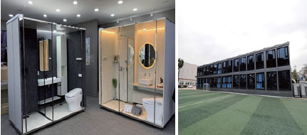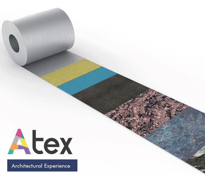 Atex products are applied to a variety of architectural areas, including design innovations in industrial complexes called gray belts, interior and exterior walls of modular houses, stone from bathroom, marble, wood, fabric sensation, glass whiteboards collaborated with Corning’s, and elevator decoration panels.