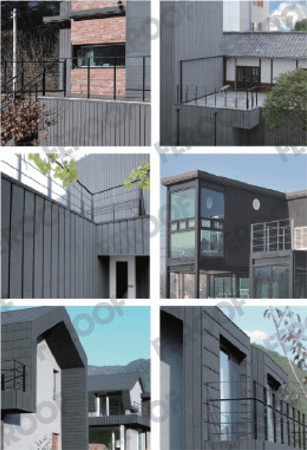 Advantages compared to other products given its surface area and roof covering area, it is considerably light and the handling and the construction is easy. Because the product is semi-permanent with mineral application, the durability is so excellent that it is very economical without a/s or repair work. This is a recyclable, eco-friendly product. Also, it is an incombustible product that can prevent damage from fi re or smoke.