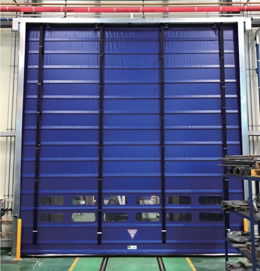 This product can be quickly opened and closed in the food processing, refrigeration, shipbuilding, chemicals, military and logistics sectors, car washes, airports, and clean rooms, among others.