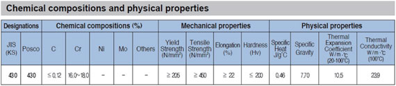 STS430 is inexpensive as it does not contain nickel while having excellent formability, oxidation resistance and magnetic properties.