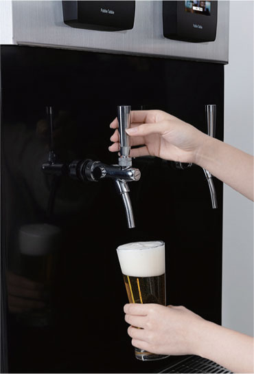 Other than the self-function, it provides smart functions such as blocking improper use, measuring the amount of beer left, detecting sold-out beers, etc., by utilizing POS, real-time communications, and sensor technologies.