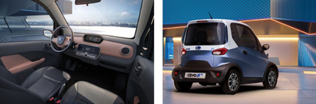 CEVO-C SE is a two-seater ultra-compact electric car that showcases its unique presence in the city with a unique profile, and two-tone application of four vivid colors and white two-tone.