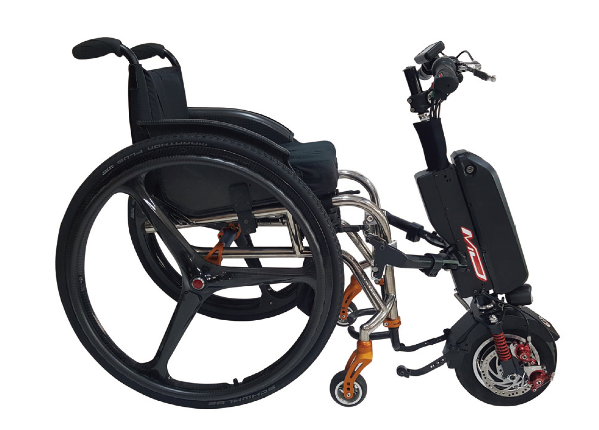 Manufactured and approved by RScareservice, the MoveOn power-assist device can be eff ortlessly att ached to manual wheelchairs, instantly transforming them into more effi cient mobility aids.