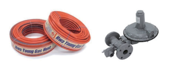 HWAYOUNG produces everything from gas hoses and single-stage regulators that connect gas cylinders to combustors, to high-capacity regulators such as pressure regulators for apartment complexes or commercial facilities.