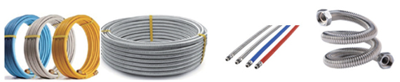 It is used for various industrial purposes and as general construction piping materials — such as water-supply piping, gas piping, sprinkler flexible joint for firefighting, flexible solar collector system, conduit, and flexible heat exchanger.
