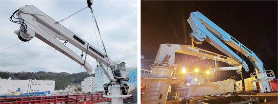 A deck crane for a ship is located at the bow or stern and is a means for moving various items needed inside and outside the ship and for work on board, and the characteristics of the crane are classified according to the function and purpose – including knuckle boom, fixed boom, telescopic knuckle boom, telescopic boom, and triplex net crane.