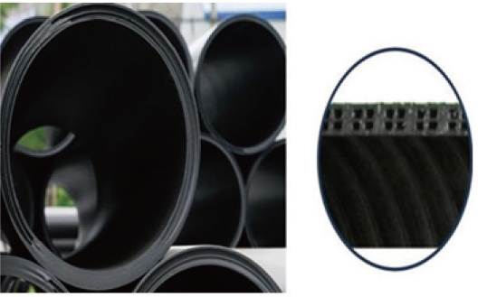 Structural polyethylene sewer pipe is used to sewer treatment, agriculture, wastewater, rainwater, water Supply, livestock waste treatment facility, pipes for land readjustment and development. Specifications that diameters are from 150mm to 1500mm and length are 6m or 10m, also customizing possible.
