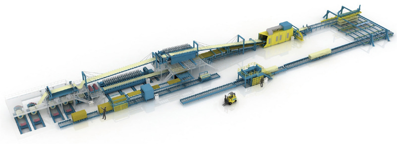 Mineral wool or glass wool is a material that has outstanding insulation effect (EN13501, A2-S1, d0 / The European standards) and excellent fire resistance, and its mineral wool sandwich panel producing equipment, using it as insulator, is the automation equipment that can continuously and efficiently produce mineral wool and glass wool sandwich panels of exquisite and diverse shapes.