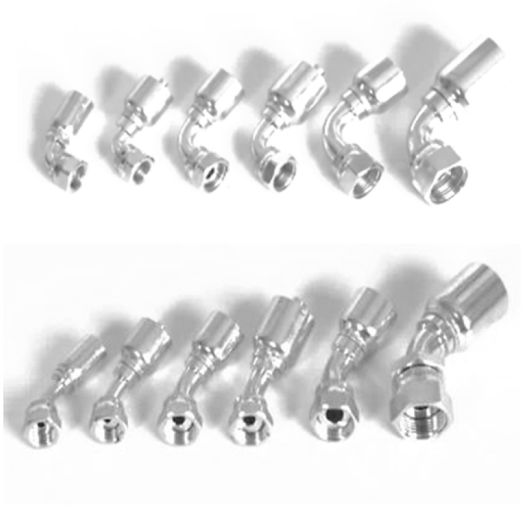 Hydraulic hose fittings used for construction equipment, heavy equipment, industrial machines, agricultural machines, etc.