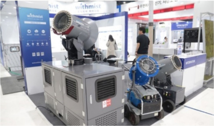 [INQ. NO. 2406M07] WITHMIST has recently displayed its advanced high-pressure fog-spray system at a local exhibition. The fog-spray system is a solution that sprays ultra-fine fog at high pressure to form a thick layer. The company has solutions suitable for various sites from 7m to 90m.