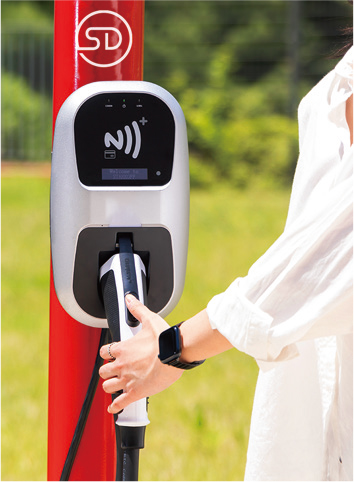 Efficiency of electric-energy consumption through the connection of EV power and power distribution networks like V2H and V2G can be supported based on its 15118-ready module supported by an optional card.