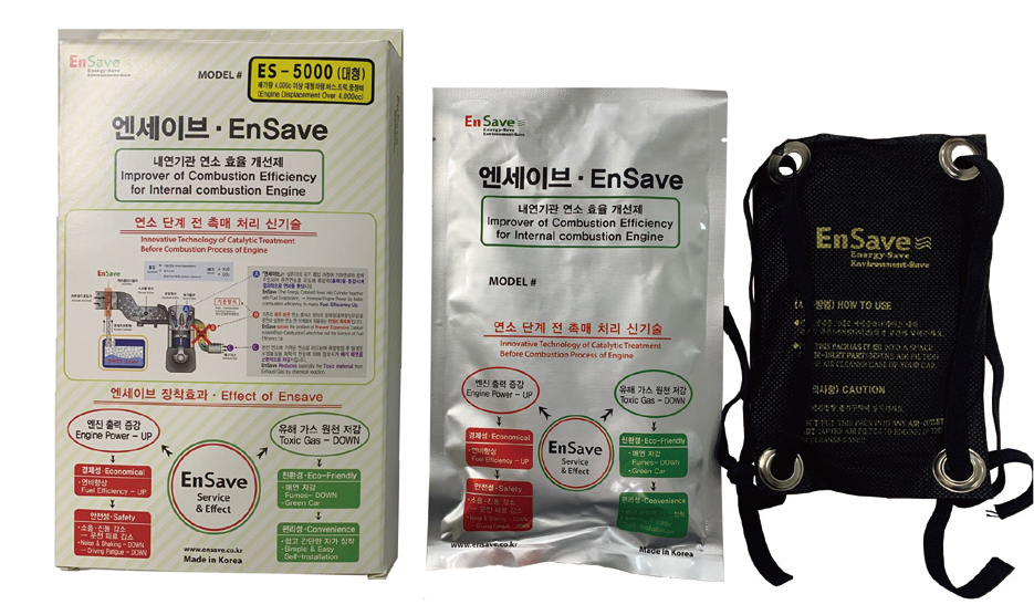 EnSave™, which has the effect of complete combustion and fuel-saving of a revolutionary automobile engine for economy, eco-friendliness; and safety, radiates the wavelengths of far-infrared wave energy generated from rare earth minerals into the engine, which decomposes the carbon component in the fuel. It acts as a catalyst to reduce fuel consumption and has the effect of improving fuel efficiency and reducing fumes by increasing engine power.