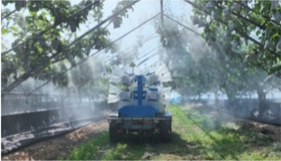 In particular ― by providing wireless control, autonomous driving, work status monitoring and work history recording, and remote maintenance that are one level higher than existing mechanical pest-control machines ― Ppurgo can spray up to 500 liters of pesticide on fruit trees and road herbicides instead of being performed by workers, thereby reducing worker fatigue.