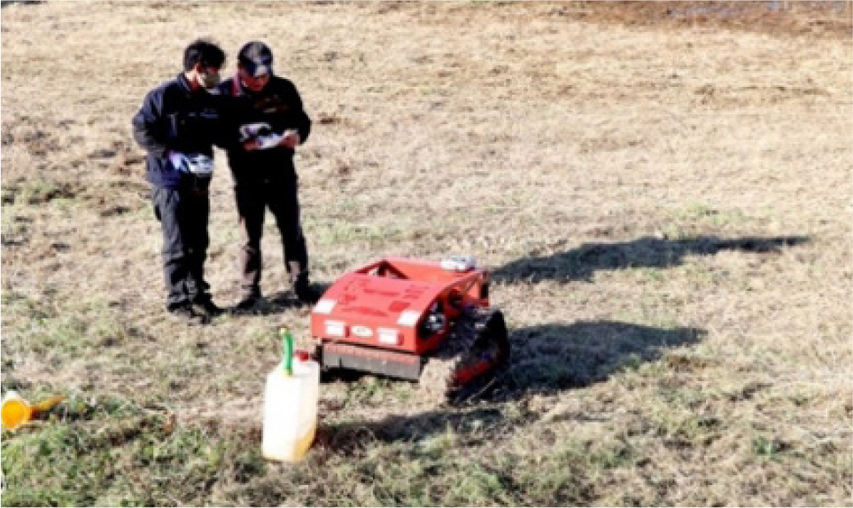 [INQ. NO. 2502M14] IRIS SPREADERS’ remote-controlled weeders are available in two models that can work from about 200m ahead and are manufactured in a tracked form so that they can work on slopes such as hills.