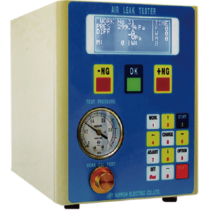 This model’s key features include real-time graphical display of leakage volume and pressure status for visual monitoring. It can realize automatic classification and output by dividing leakage sizes into large, medium, and small ones. Additionally, different pressure conditions can be set for each work process, enabling adaptation to various product groups. It has various features designed to enhance user convenience and productivity such as air charge curve settings, rapid pressurization and pressure unit conversion.