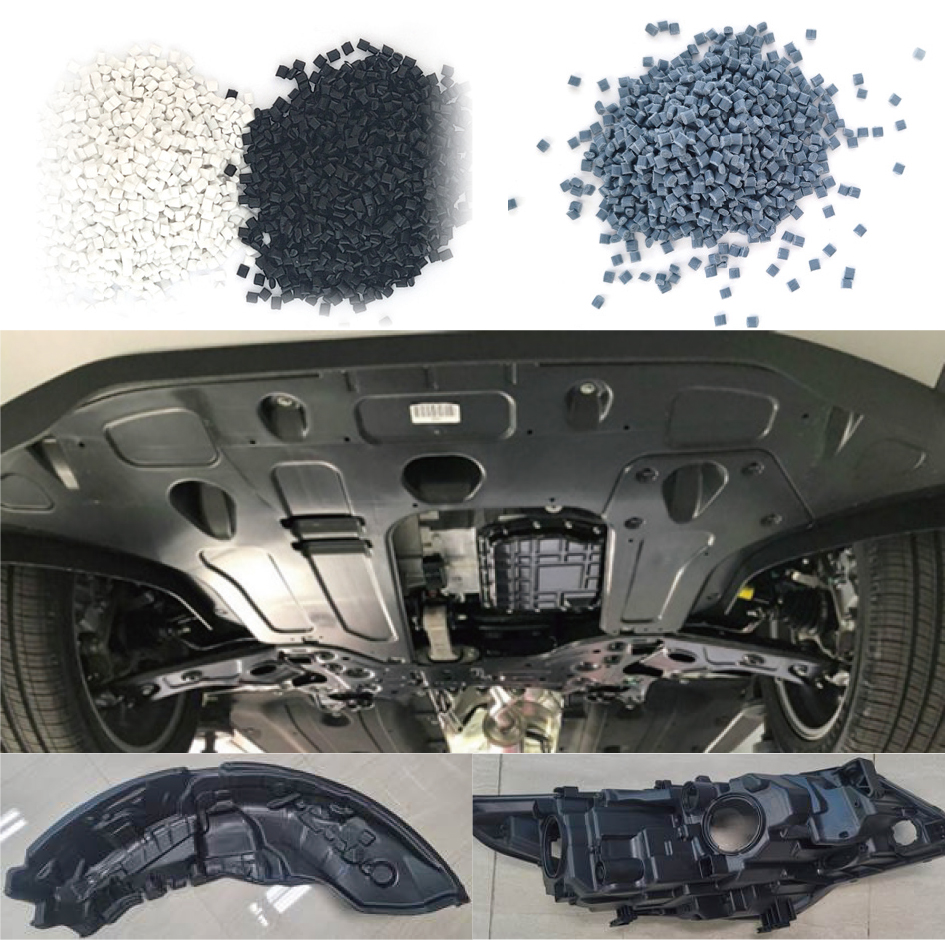 Its primary applications include automotive exterior parts (bumpers, wheel guards/liners, engine undercovers, cowl-top covers, battery trays, headlamp housings, fenders, mud guards, sill side moldings, engine covers, etc.), interior parts (consoles, pillar trims, etc.), HVAC cases, air cleaners, shrouds, and home appliance parts (TV covers, washing machines, air conditioners).