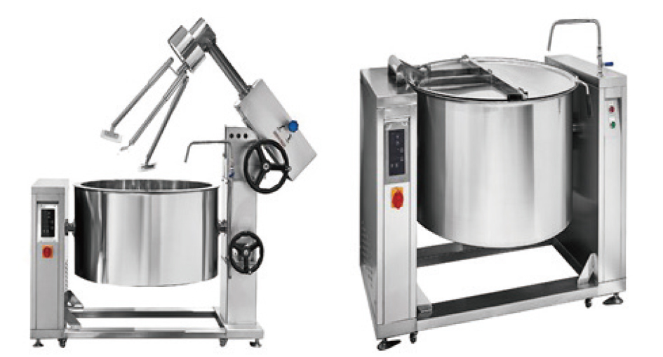 Suitable for 500-person meals, AMI INTERNATIONAL’s induction rotary stir-fry pot mixers are of the three-blade tilting type, with a consumption power of 30KW. Being easy to use, the products allow for convenient control of heat power and mixing speed. Utilizing three-fold panels made of stainless steel and aluminum, they are easy to clean and ensure outstanding thermal conductivity and durability. For better user safety, they are equipped with various safety devices like overheat-preventing sensors and emergency stop switches.