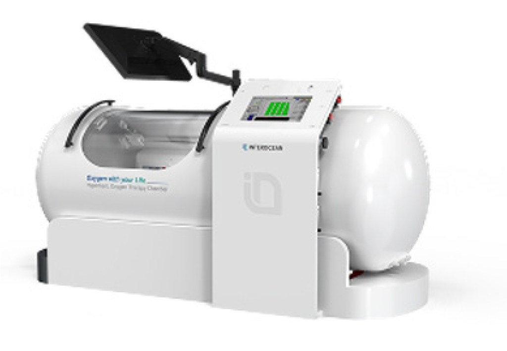 The Trinity Prime is a 3-atmosphere hyperbaric oxygen therapy device that allows patients to receive treatment while lying down. Its integrated design maximizes space utilization by integrating the main unit and control console.