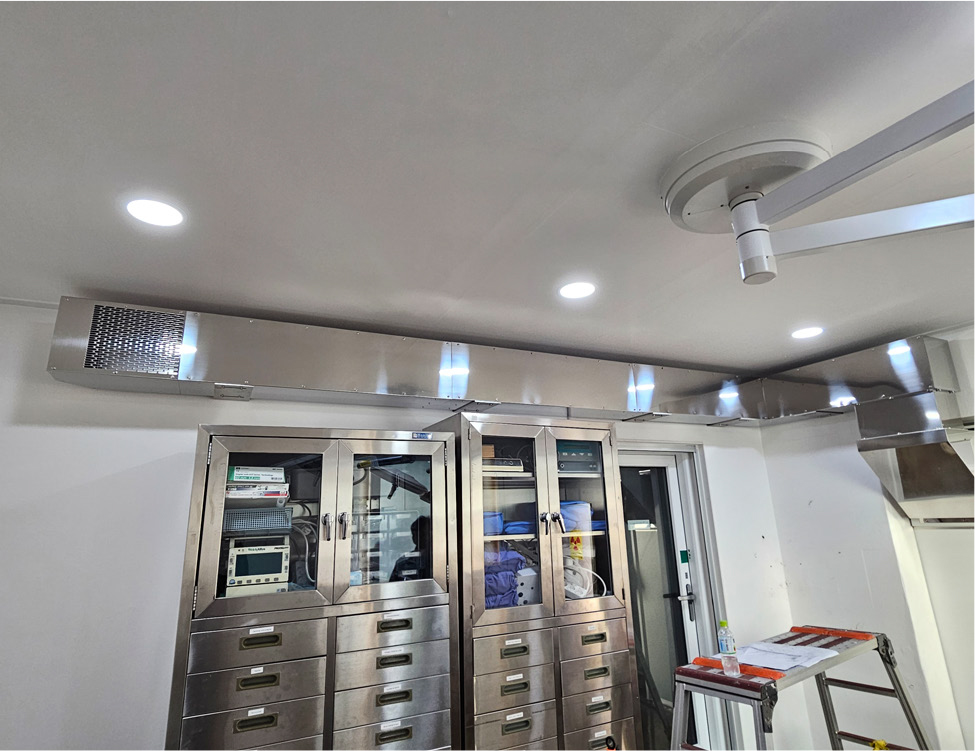 JEESANG recently successfully completed the installation of positive pressure operating room ventilation systems, including fan filter units, at two domestic veterinary hospitals. These systems are based on a structure that achieves high cleanliness with minimal construction, and are characterized by both cost-effectiveness and efficiency. Additional estimates and consultations are currently underway with numerous domestic veterinary hospitals, with plans to gradually expand their application to operating rooms in both general hospitals and specialized medical institutions.