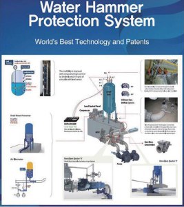 And the non-slamming system has two kinds of ejectors: the one shall be installed between the main pipeline and surge vessel; and another shall be installed between the pumps and the check valves. They will remove negative pressure and absorb high pressure and will give a time to slow closing of check valves to prevent slamming of check valves.