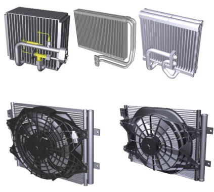 substances. Mainly applied to products, the latter has high heat-exchange efficiency but it is difficult to remove foreign substances, so it is mainly applied to general vehicles. Fan&shroud is a condenser. It is a component that is mounted on the product to allow direct air cooling. It is excellent in mounting and durability with low noise, miniaturization and high performance.