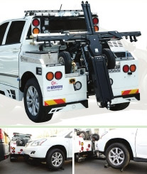 The MT Burgo Tow Truck produced by the company is a compact underlift tow truck that is mounted on a Korando SUV and features a compact and rigid structure and fast maneuvering ability. A locking device that can tilt to the left and right allows the tow truck to tow a car in a narrow space.