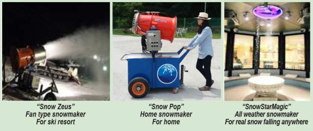 thereby leading the snowmaking technology that is becoming competitive in the global market. Also, Snowtech just has developed the Home Snowmaking Machine enabling anyone to easily make snow, even in the home garden. It is a snowmaker that enables the general public to enjoy the snow more enjoyably than ever before. Snowtech thinks that ‘Snow is the most beautiful romance with which God has provided mankind.’ We will become an enterprise striving all the more to develop a valuable snowmaking technology harmonizing provision of nature and person.