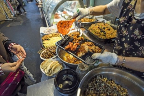 The area of Euljiro is also famous for its countless Pyeongyang naengmyeon (cold buckwheat noodles) restaurants. The cold and unique flavor of the soup is a special trait of Pyeongyang naengmyeon. The noodles go especially well with meat. Each store has a variety of selections from bulgogi to suyuk (boiled beef slices), pyeonyuk (boiled pork slices), and much more.