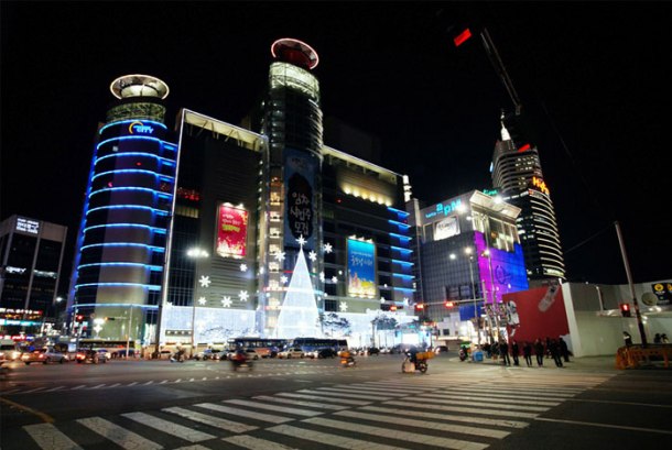Doosan Tower. Recently, the name was changed to Dongdaemun Sebit Market.