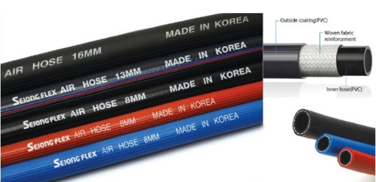 Sejong Flex’s platinum air hoses are products intended to provide high-pressure resistance, excellent elasticity and flexibility, outstanding wear resistance, and strong durability.