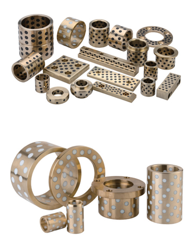 Brass oil-less bearing SGO #500 is a plain bearing with graphite plugged to base metal, brass. Fine particles of solid lubricant create lubrication film on the motion part, when friction occurs, and the bearing can achieve excellent self-lubrication and abrasion-resistance under dry-lubricating conditions.